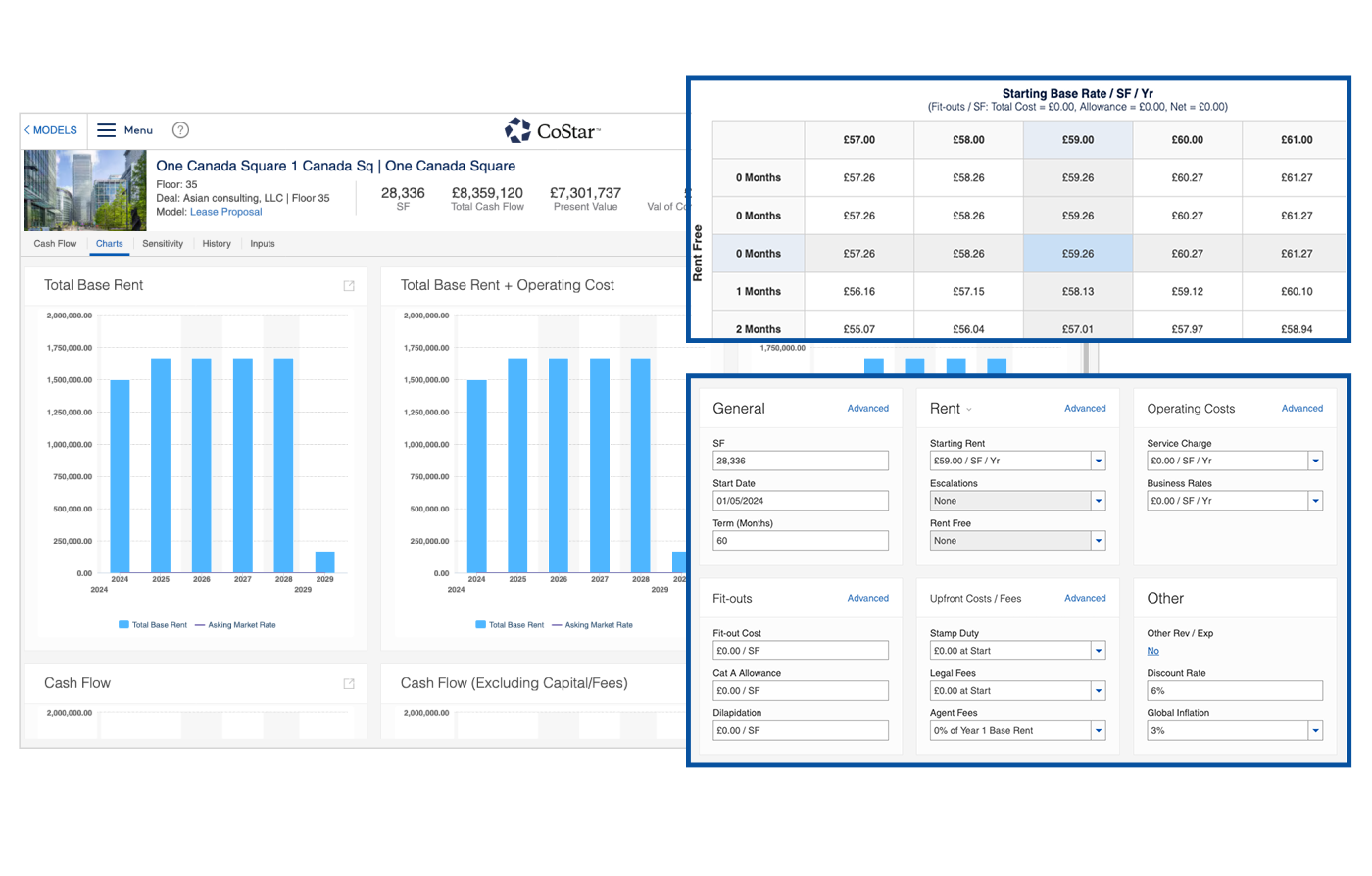 Die Modellierung der vielen Permutationen eines Leasingangebots mithilfe einer Tabellenkalkulation kann eine mühsame manuelle Aufgabe sein. CoStar Leasing-Analyse ist ein leistungsfähiges Werkzeug, das automatisch den Cash Flow für neue und bestehende Leasingverträge berechnet.