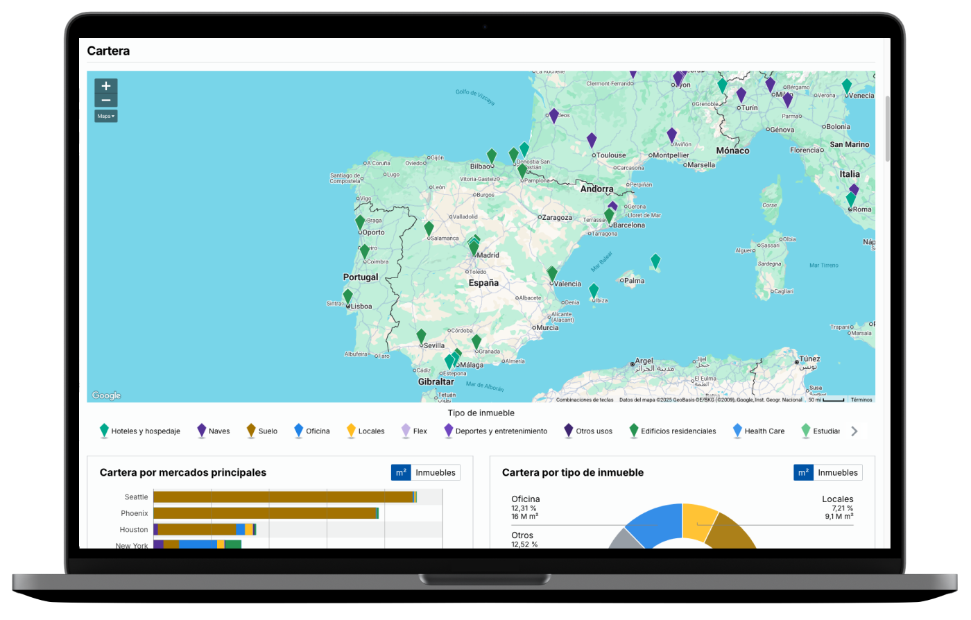 Accede a un inventario completo de inmuebles y conoce todos los detalles que necesites del edificio para suscribir acuerdos y encontrar oportunidades en nuevos mercados, incluidos datos sobre préstamos inmobiliarios, rendimiento, ingresos y gastos.