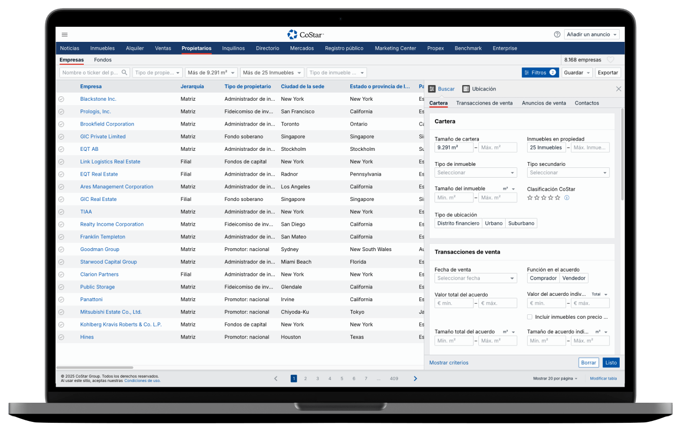 Consulta información sobre más de 13.000 fondos de inversión en inmuebles comerciales, conectada con la base de datos de registros de inmuebles, anuncios, transacciones de venta y datos de contacto de CoStar.