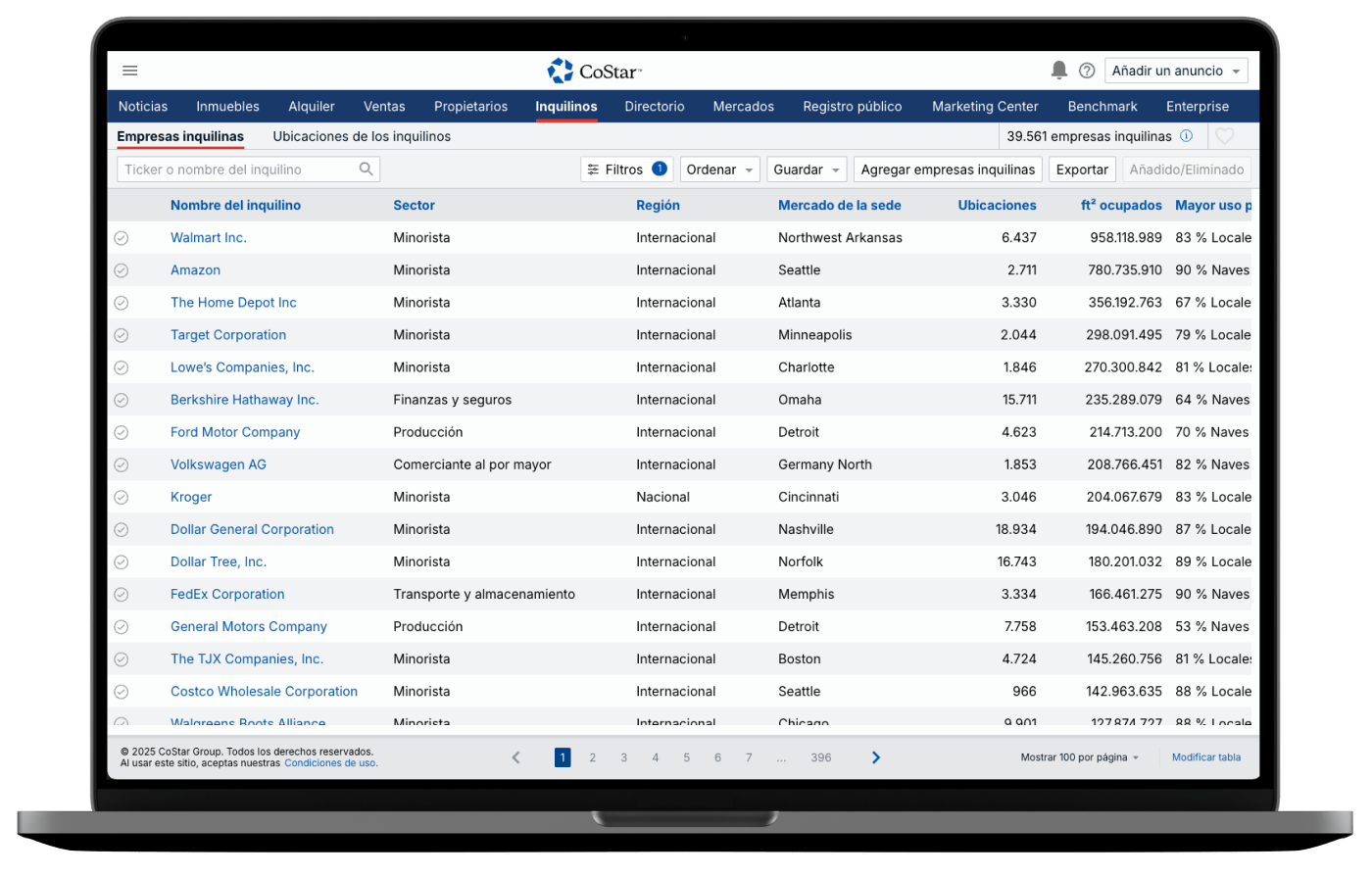 Obtenga una visión detallada de los inquilinos comerciales a nivel de ubicación o de cartera. CoStar lleva a cabo un seguimiento continuo de los inquilinos comerciales en todos los sectores y zonas geográficas para ofrecerle toda la información que necesita en un solo lugar.