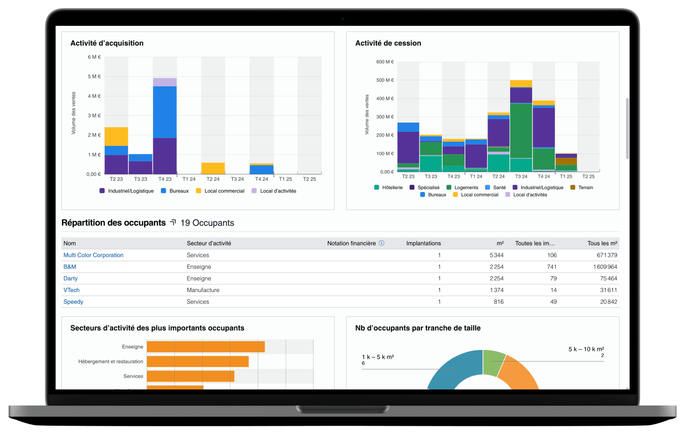 Una vez que haya identificado a los inversionistas adecuados a los que quiere dirigirse, explore los perfiles completos de los propietarios para entender qué tipos de propiedades les interesan o qué rendimiento tienen. Además, también podrá consultar, entre otros, los mapas de cartera, la cobertura de acuerdos recientes, o la información sobre vacancias.