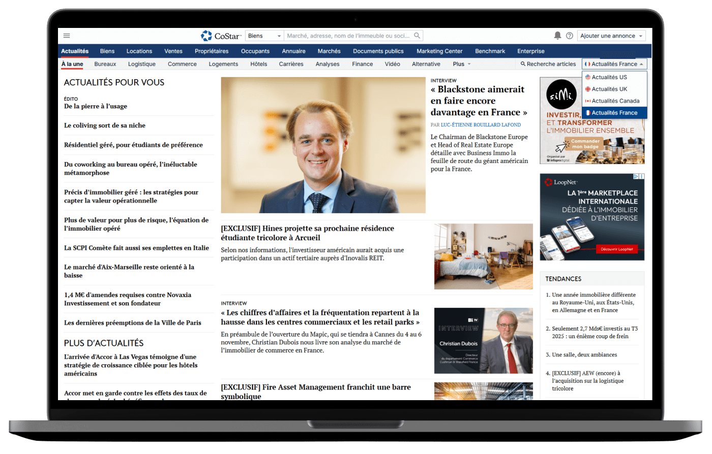 Avec CoStar Actualités, bénéficiez d’une vision complète du secteur immobilier : données clés, tendances de marché, transactions et acteurs majeurs, analysés par nos journalistes aux États-Unis, au Royaume-Uni, au Canada et en France.
