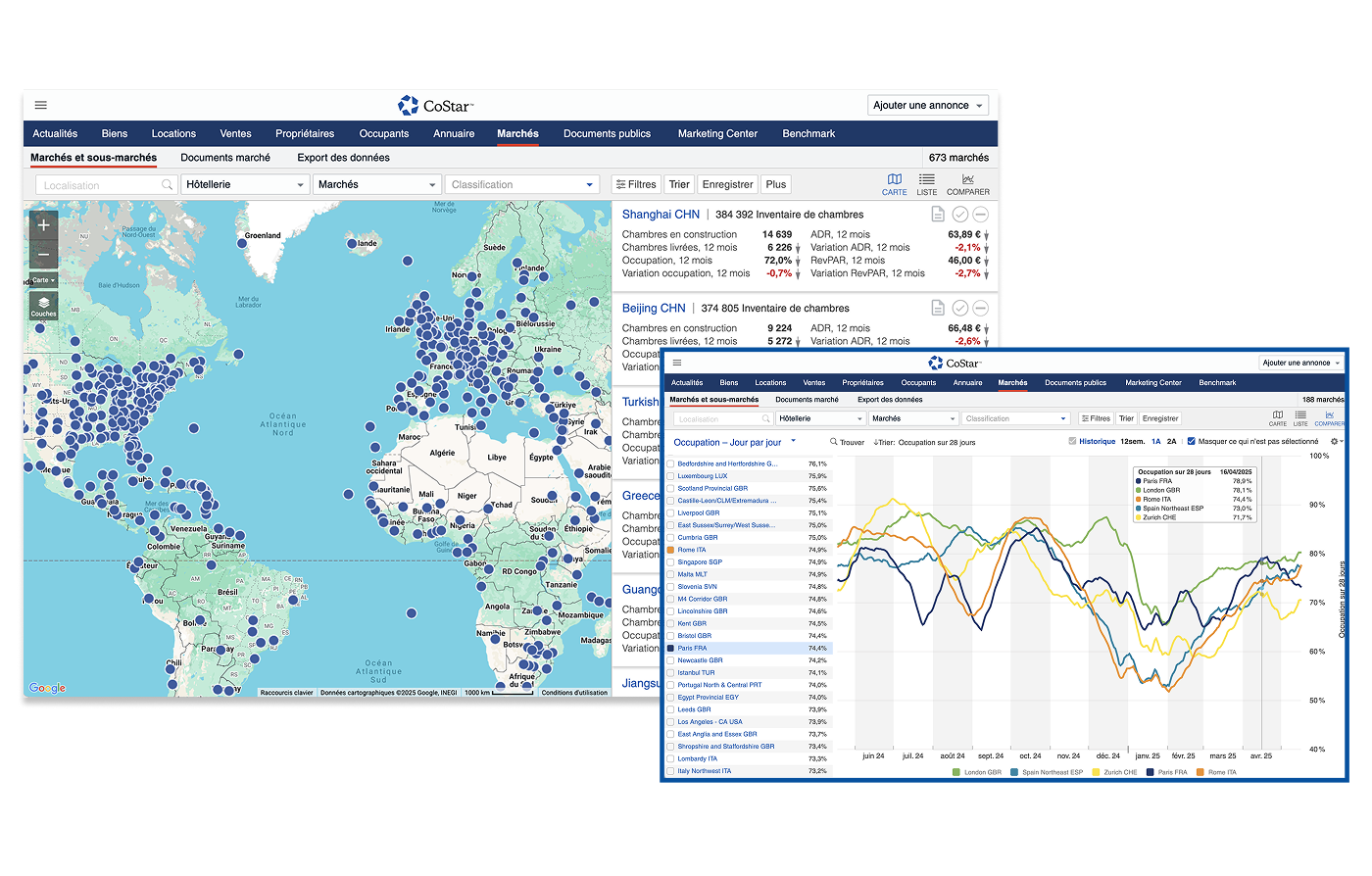 Alimentés par des études approndies du marché, les outils de rapport et d’analyses de CoStar s’appuient sur la plus grande base de données du secteur comprenant plus de 8,7 millions de biens professionnels et plus de 20 millions de transactions à la location et à la vente.