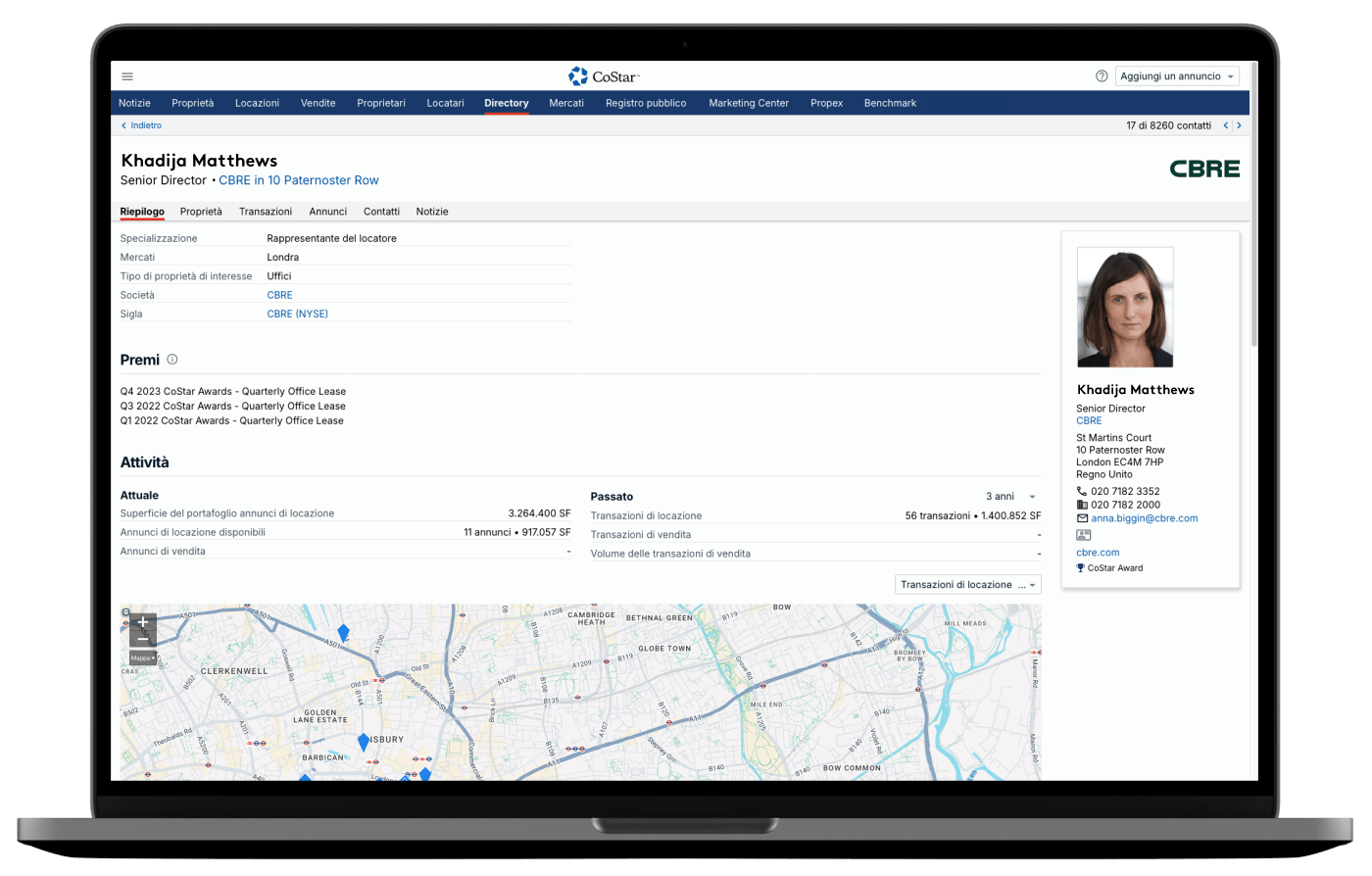 Accedi a informazioni dettagliate su contatti, sedi o società, inclusi annunci, transazioni, recapiti e notizie correlate.