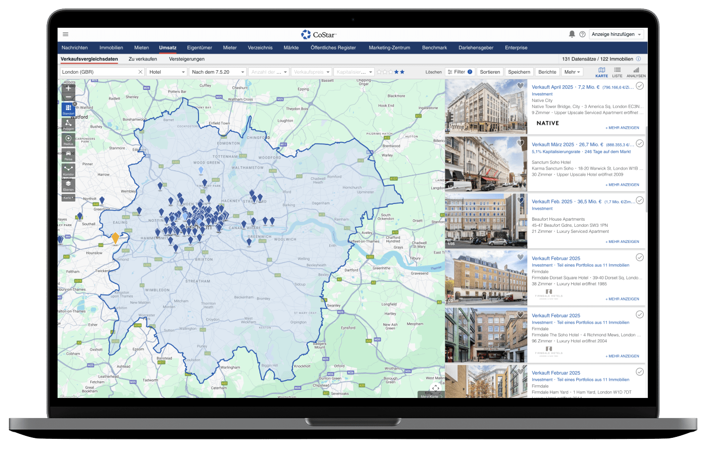 CoStar mit STR Benchmark ist die einzige Benchmarking-Lösung, die Hotelbesitzern einen umfassenden Überblick über den Lebenszyklus eines Hotels bietet – vom Erwerb über den Betrieb bis hin zur Veräußerung.