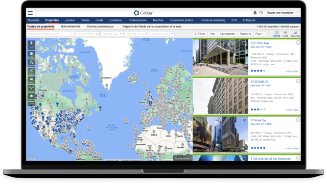 CoStar offre aux courtiers une plateforme complète d'informations, d'analytiques et de nouvelles sur l'immobilier commercial, dans les secteurs industriel, multifamilial, hôtelier, de la vente au détail, des bureaux et des terrains, et ce, aux États-Unis, au Royaume-Uni et au Canada.