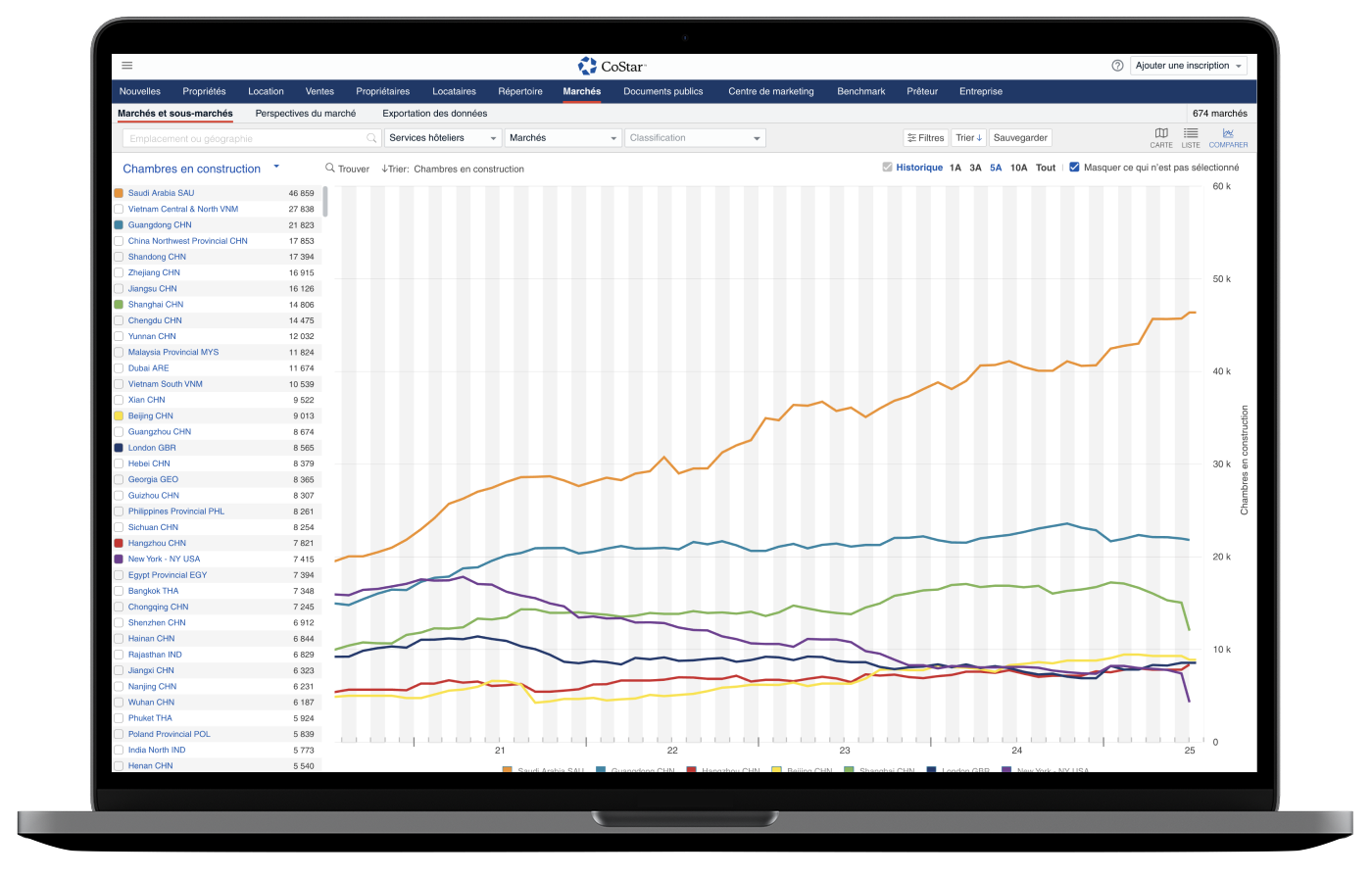 Accédez à des prévisions complètes sur le marché et les sous-marchés à partir d’une source unique pour orienter la planification budgétaire. Utilisez les informations sur la rentabilité pour contrôler les dépenses, identifier les tendances opérationnelles et optimiser les profits pour les hôtels individuels et pour l’ensemble d’un portefeuille. Collaborez avec les équipes de développement pour démontrer aux franchisés potentiels la capacité d’une marque à générer des rendements moyens élevés et pour estimer les revenus de la redevance de franchisage dans différents secteurs.