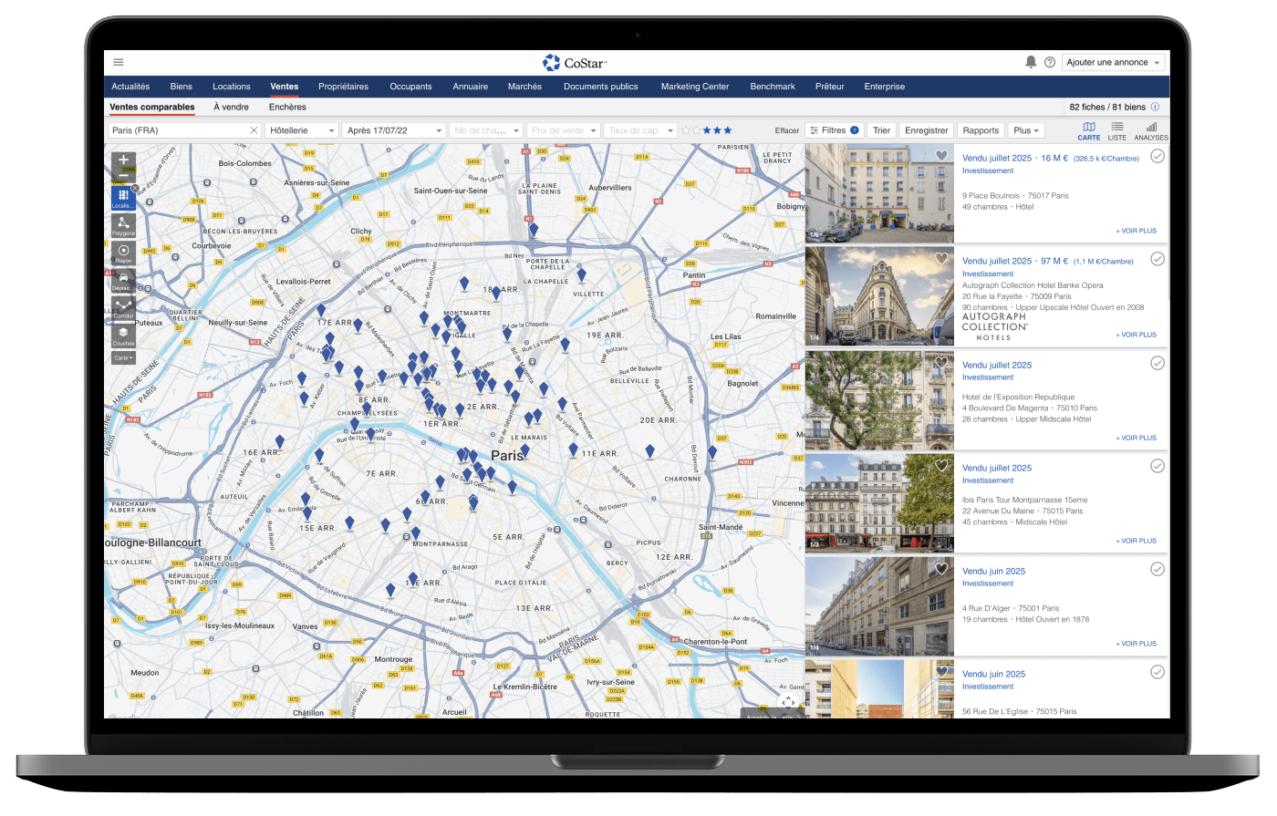 CoStar avec STR Benchmark est la seule solution de benchmarking qui donne aux propriétaires d’hôtels une vision complète du cycle de vie de l’établissement, de l’acquisition à la cession, en intégrant toutes les phases d’exploitation.