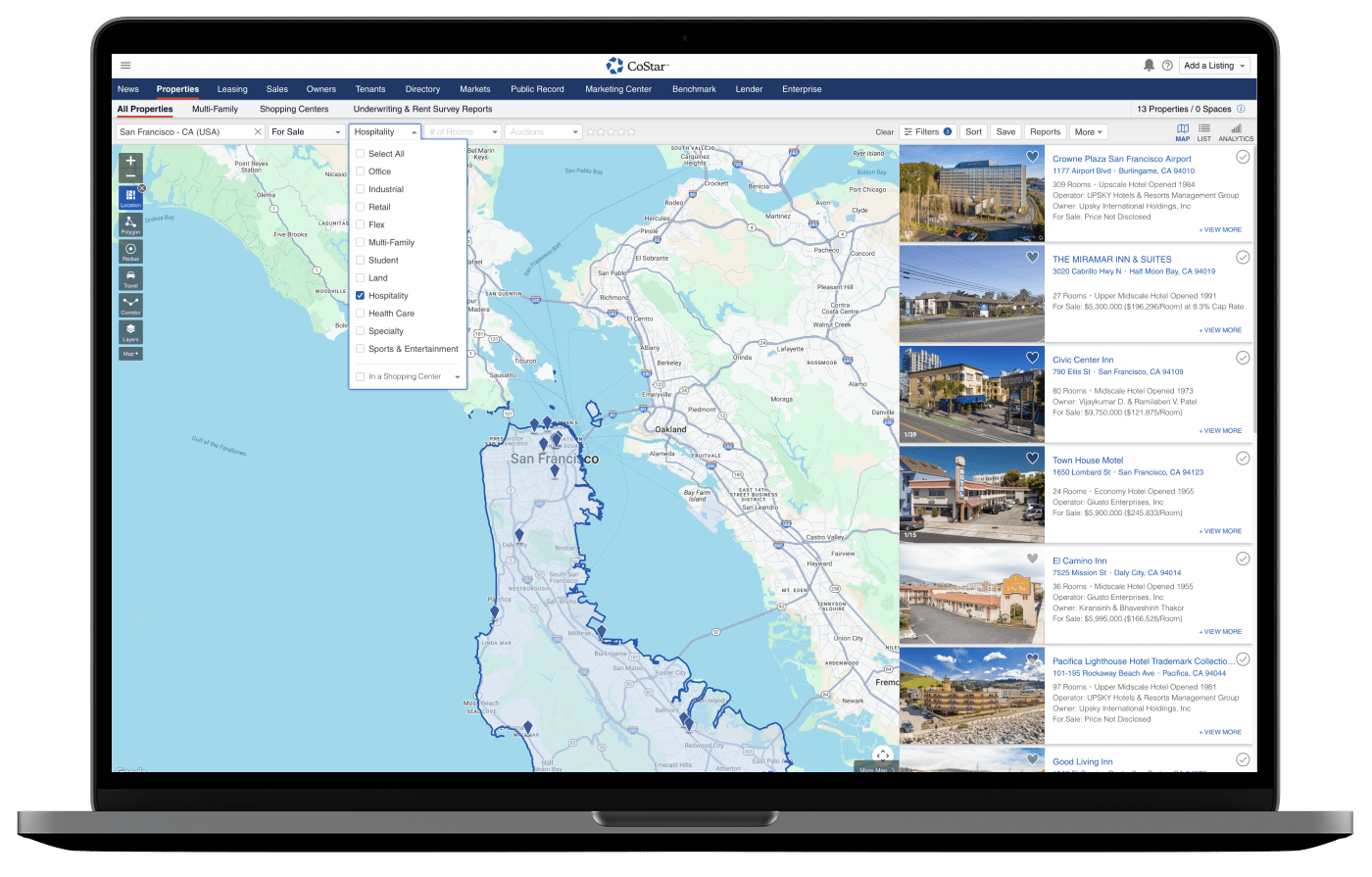 CoStarとSTR Benchmarkは、ホテルのオーナーに、買収から運営、売却に至るホテルライフサイクルの包括的なビューを提供する唯一のベンチマーキングソリューションです。