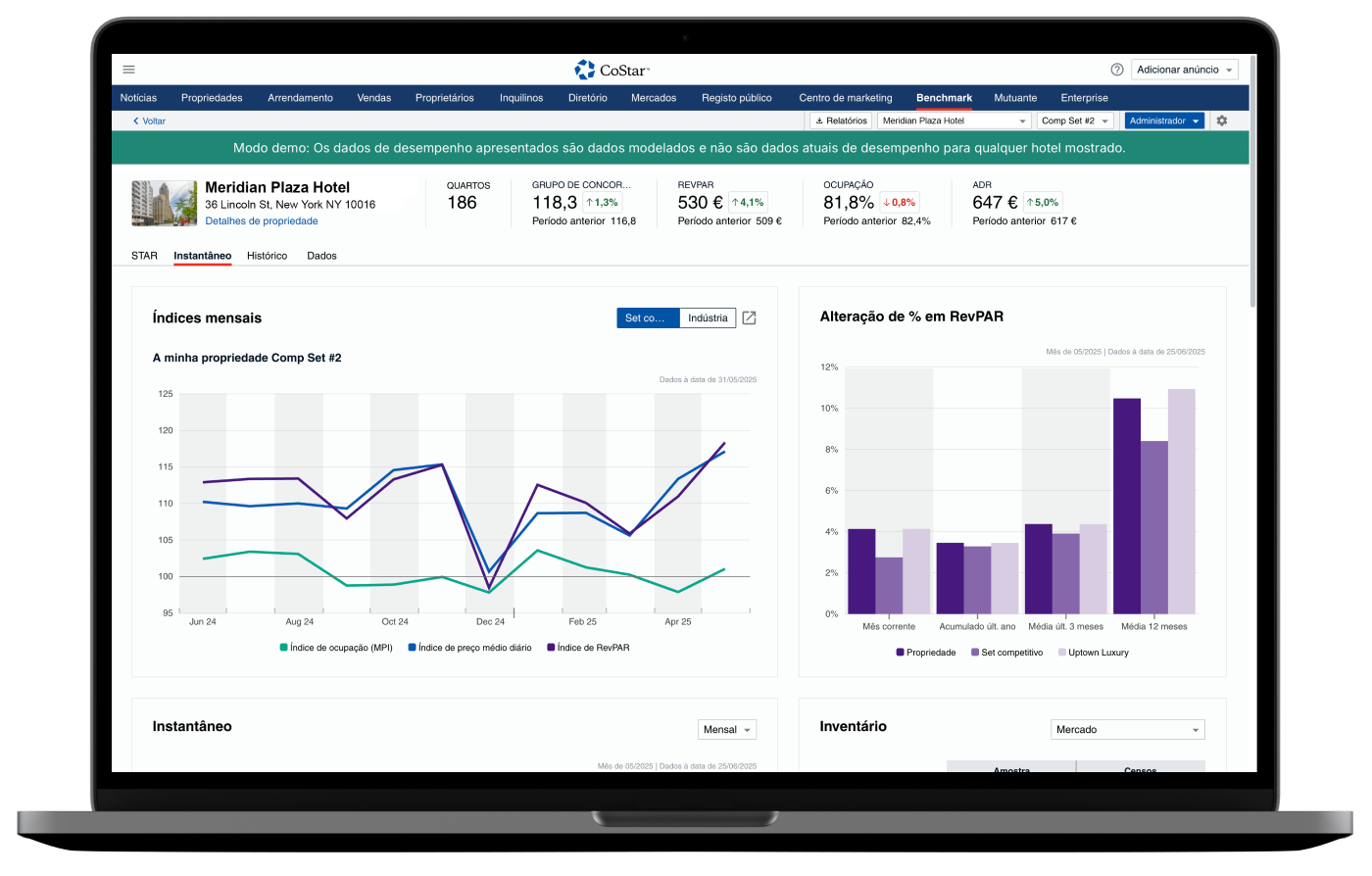 Benchmark fornece os insights ao nível da propriedade e do portefólio necessários para tomar decisões acertadas e em tempo real e otimizar a colaboração estratégica entre portefólios de hotéis, departamentos de vendas e marketing, equipas de gestão de receitas e desempenho, operações, finanças e construção.