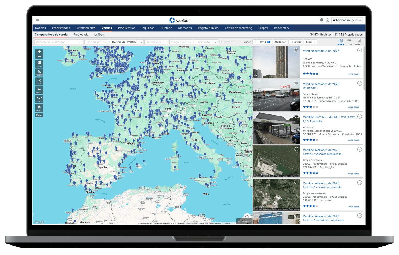 A pesquisa da CoStar nunca para. Todos os dias, adicionamos novas transações de vendas à nossa base de dados. Ao analisar as vendas de imóveis comerciais, o acesso à CoStar garante-lhe o acesso ao panorama mais abrangente possível das transações.