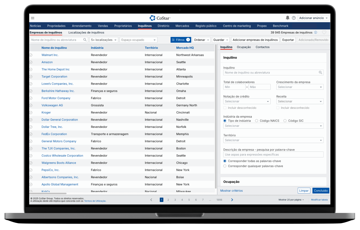Veja informações sobre mais de 13 mil fundos de investimento imobiliário comercial, ligados à base de dados da CoStar de registos de propriedades, anúncios, comparações de vendas e dados de contacto.
