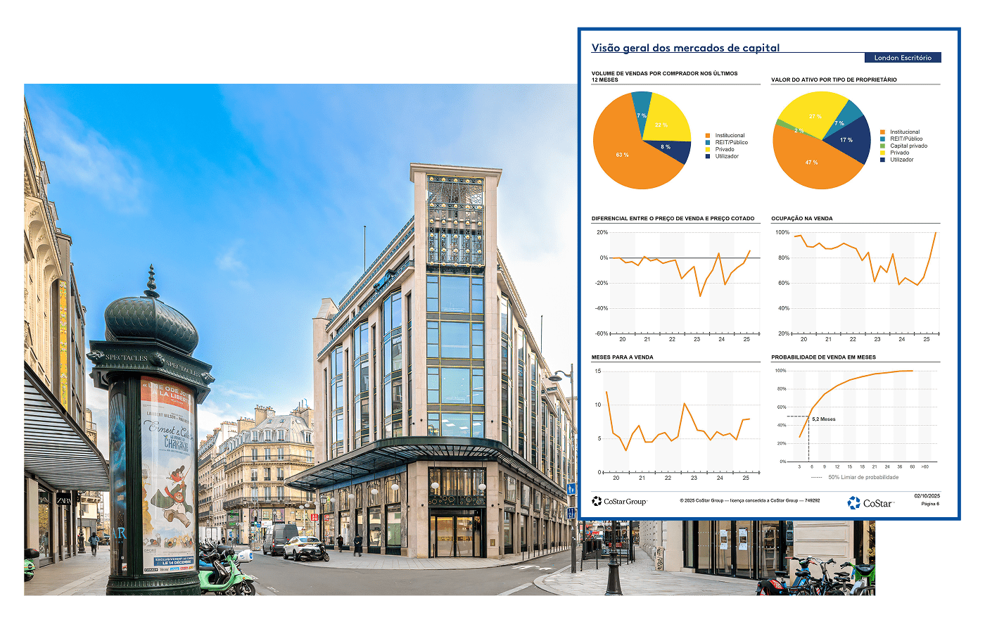 Explore as tendências de fluxo de capital, preços e volume de transações, com o apoio da pesquisa e dos dados especializados da CoStar.