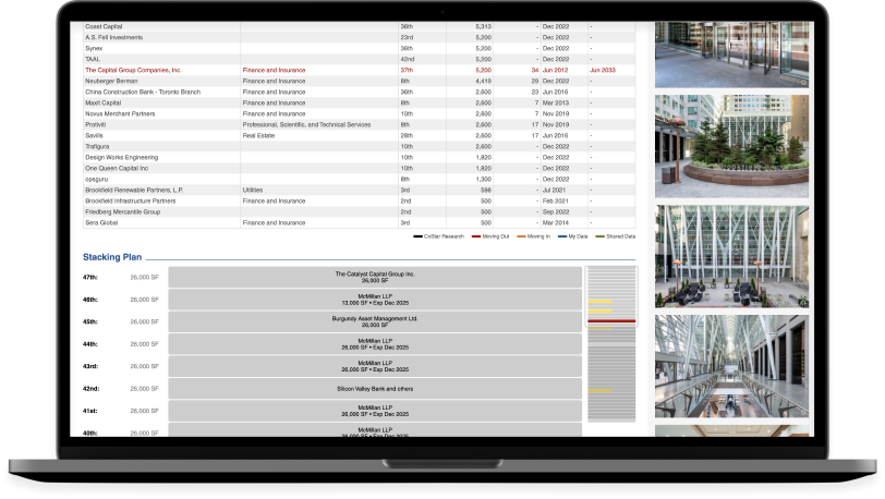See tenant space and lease expiration data alongside loan maturity timelines and financing details to better evaluate risk profiles and timing for acquisitions or leasing decisions.