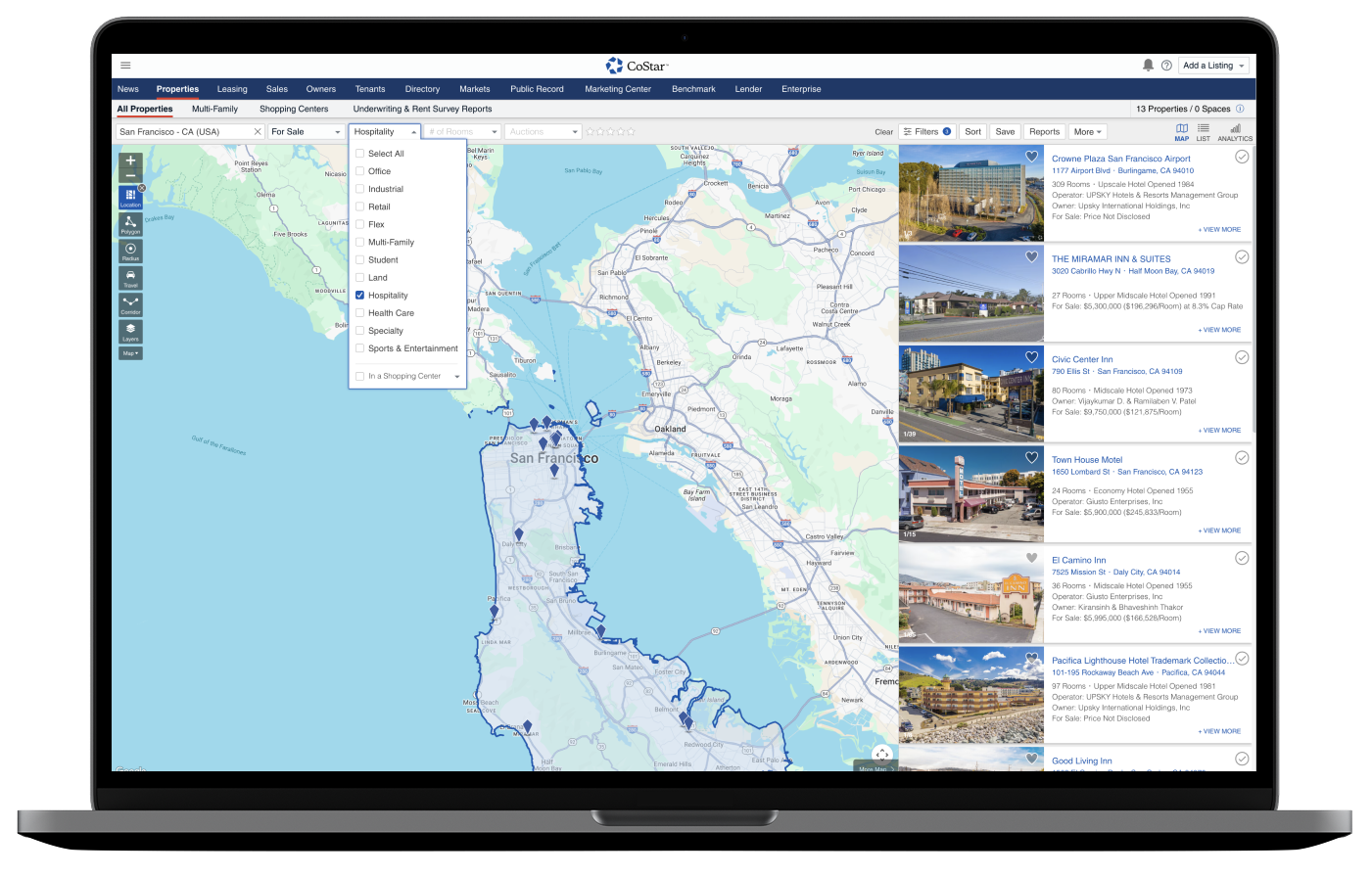 CoStar + Benchmark 是唯一一款能够让业主、运营方和品牌在从收购到运营再到撤资的整个酒店生命周期全面了解市场份额信息的解决方案。